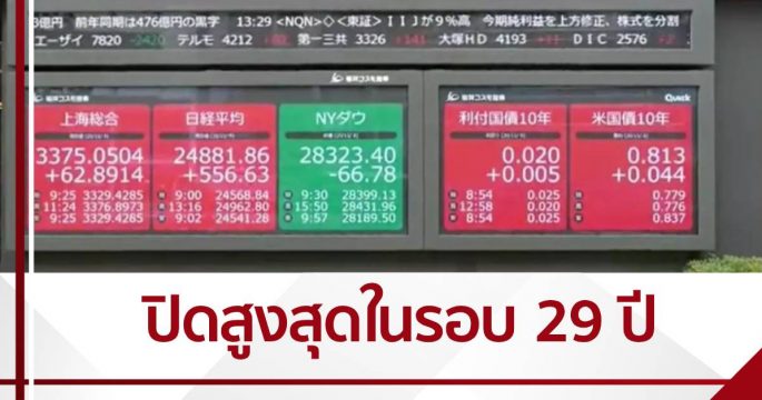 นิกเกอิญี่ปุ่นปิดสูงสุดในรอบ 29 ปี
