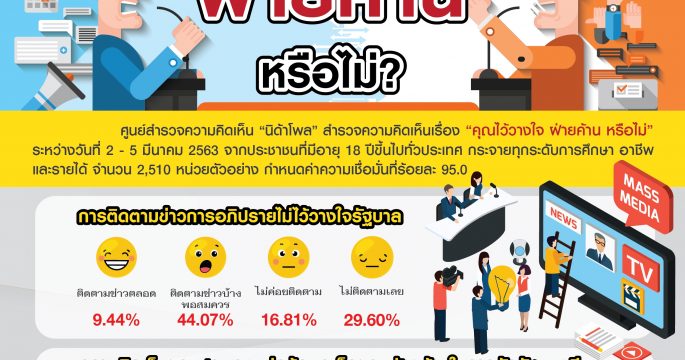 นิด้าโพล เผย ประชาชนส่วนใหญ่ไว้วางใจฝ่ายค้านทำหน้าที่ตรวจสอบในเวทีอภิปรายไม่ไว้วางใจ