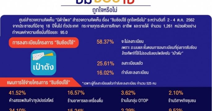 นิด้าโพลเผยชิมช้อปใช้เฟส 2 ประชาชนร้อยละ 32.54 ลงทะเบียนไม่ทัน ไม่สำเร็จ