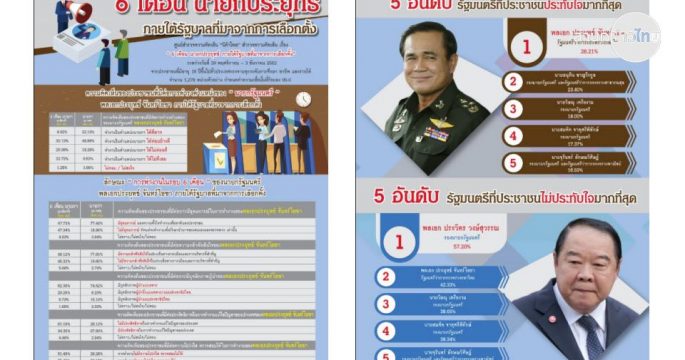 ขณะที่ รัฐมนตรีที่ประชาชนประทับใจในการทำงาน อันดับแรก “พล.อ.ประยุทธ์” ในฐานะ รมว.กลาโหม ส่วน “พล.อ.ประวิตร” ติดอันดับแรกรัฐมนตรีที่ประชาชนไม่ประทับใจในการทำงาน