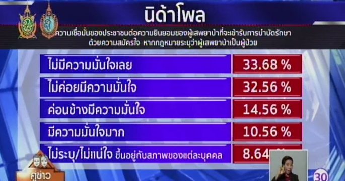 นิด้าโพล เปิดเผยผลสำรวจความคิดเห็นของประชาชน เรื่องปัญหายาบ้าพบว่า ประชาชนส่วนใหญ่ ร้อยละ 59.36 ระบุว่า ผู้เสพยาบ้า ควรได้รับการลงโทษ