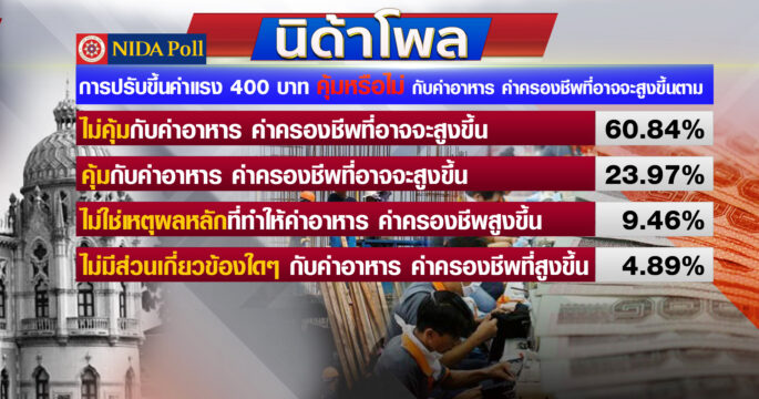 “นิด้าโพล” เผยผลสำรวจความคิดเห็นประชาชน เรื่อง “ค่าแรงขึ้น…คุ้มหรือไม่ กับ ค่าแกง?”