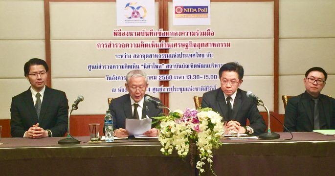 กรุงเทพฯ 17 ม.ค.-ส.อ.ท. จับมือ นิด้า MOU สำรวจความคิดเห็นด้านเศรษฐกิจอุตสาหกรรมประเดิมโพลแรก แถลง “ผลการสำรวจ CEO Survey ทิศทางเศรษฐกิจอุตสาหกรรมปี 2560