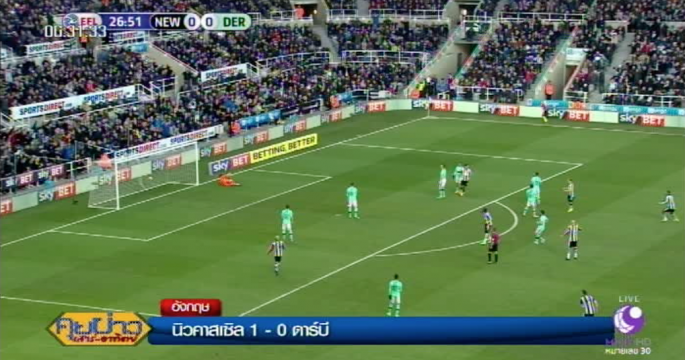 นิวคาสเซิล ยูไนเต็ด เปิดบ้านเฉือนชนะ ดาร์บี้ เคาท์ตี้ 1-0 ขยับขึ้นนำจ่าฝูงฟุตบอลอีเอฟแอล แชมเปียนส์ชิพ
