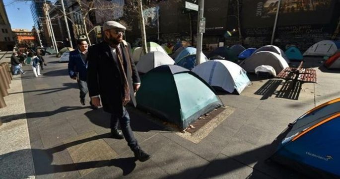 บรรดาผู้ไร้ที่อยู่อาศัยจำนวนมากแห่กางเต็นท์นอนบริเวณใจกลางนครซิดนีย์ของออสเตรเลีย จนมีลักษณะคล้ายเมืองย่อมๆ