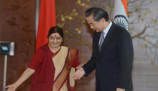 นายหวัง อี้ รัฐมนตรีต่างประเทศจีนพบหารือกับนางศุษมา สวราช รัฐมนตรีต่างประเทศอินเดียที่กรุงนิวเดลี เพื่อวางแนวทางแลกเปลี่ยนระหว่างกัน