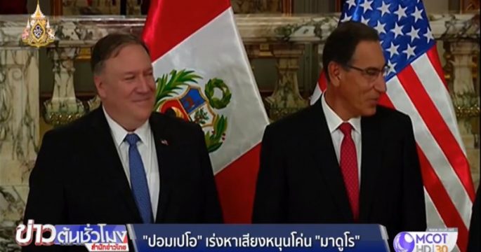 นายไมค์ พอมเพโอ รัฐมนตรีต่างประเทศสหรัฐ เข้าพบประธานาธิบดีเปรู เพื่อหาเสียงสนับสนุนในการต่อต้านประธานาธิบดีนิโกลาส มาดูโร ของเวเนซุเอลา