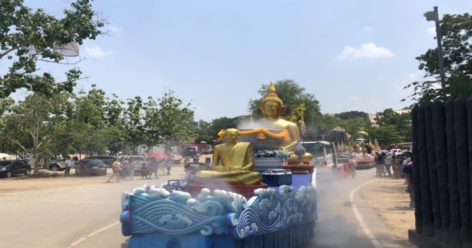 งานนุ่งโจง ห่มสไบ เล่นน้ำแบบไทยๆ ณ สิงห์บุรี มีพิธีอัญเชิญหลวงปู่ธรรมโชติ ให้ประชาชนได้สรงน้ำ