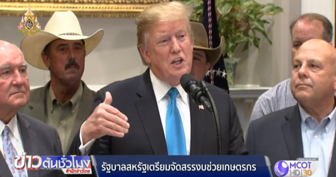 รัฐบาลสหรัฐเตรียมจัดสรรงบประมาณ 16,000 ล้านดอลล่าร์ ช่วยเหลือเกษตรกรที่ได้รับผลกระทบจากนโยบายการค้า ทั้งนี้สหรัฐมีกำหนดเจรจาการค้ากับจีนในเดือนหน้า