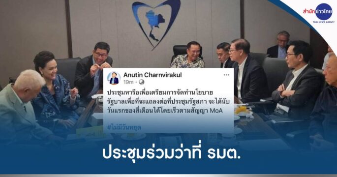 พรรคภูมิใจไทย 13 ก.ย.-“อนุทิน” โพสต์ภาพ นั่งประชุมร่วมว่าที่ รมต. จัดทำนโยบายรัฐบาล เพื่อแถลงต่อที่ประชุมรัฐสภา นายอนุทิน ชาญวีรกูล นายกรัฐมนตรี โพสต์ภาพการประชุมร่วมกับว่าที่รัฐมนตรี อาทิ นายบวรศักดิ์ อุวรรณโณ ว่าที่รองนายกรัฐมนตรี ฝ่ายกฎหมาย นายสีหศักดิ์ พวงเกตุแก้ว ว่าที่รัฐมนตรีว่าการกระทรวงการต่างประเทศ นานอรรถพล ฤกษ์พิบูลย์ ว่าที่รัฐมนตรีว่าการกระทรวงพลังงาน พล.อ.ณัฐพล นาคพาณิชย์ ว่าที่รัฐมนตรีว่าการกระทรวงกลาโหม นางศุภจี สุธรรมพันธุ์ ว่าที่รัฐมนตรีว่าการกระทรวงพาณิชย์ และนายเอกนิติ นิติทัณฑ์ประภาศ ว่าที่รัฐมนตรีว่าการกระทรวงการคลัง พร้อมข้อความระบุว่า “ประชุมหารือเพื่อเตรียมการจัดทำนโยบายรัฐบาลเพื่อที่จะแถลงต่อที่ประชุมรัฐสภา จะได้นับวันแรกของสี่เดือนได้โดยเร็วตามสัญญา MoA #ไม่มีวันหยุด” ผู้สื่อข่าวรายงานว่า สำหรับนโยบาย ที่แน่ชัดแล้ว คือ การฟื้นคืนชีพคนละครึ่ง แต่ปรับรูปแบบสำหรับผู้ที่เสียภาษี จะแบ่งเป็นรัฐจ่าย 60 ประชาชนจ่าย 40 นอกจากนี้ ที่มีการพูดถึง แต่ยังไม่ได้สรุป คือโครงการเราเที่ยวด้วยกัน และการกระจายอำนาจสู่ท้องถิ่น รวมถึงแก้ไขปัญหาภัยธรรมชาติด้วย.-315.-สำนักข่าวไทย