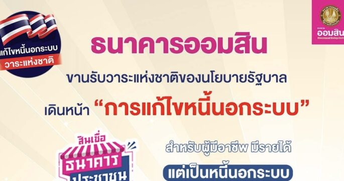 ออมสิน ขานรับนโยบายรัฐบาล เดินหน้าวาระแห่งชาติ “การแก้ไขหนี้นอกระบบ”ให้กู้ 50,000 บาทต่อราย ดอกเบี้ย 0.75% ต่อเดือน ได้ตั้งแต่บัดนี้เป็นต้นไป