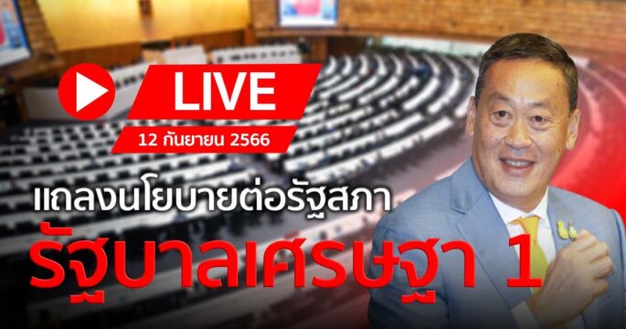 ถ่ายทอดสดการประชุมร่วมกันของรัฐสภา ครั้งที่ 5 พิจารณาเรื่องด่วน “คณะรัฐมนตรีแถลงนโยบายต่อรัฐสภา ตามมาตรา 162 ของรัฐธรรมนูญแห่งราชอาณาจักรไทย” | 12 กันยายน 2566