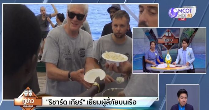 ริชาร์ด เกียร์ นักแสดงรุ่นใหญ่ของฮอลลีวู้ดไปเยี่ยมผู้อพยพบนเรือขององค์กรด้านมนุษยธรรม ที่ติดอยู่กลางทะเลเมดิเตอร์เรเนียนนานกว่า 1 สัปดาห์แล้ว