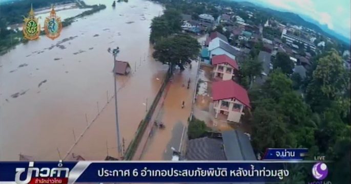 น้ำท่วมหนักใน 6 อำเภอของ จ.น่าน ชาวบ้านกว่า 3,000 หลังคาเรือนเดือดร้อน พร้อมเฝ้าระวังสถานการณ์ 24 ชั่วโมง ส่วนเชียงราย น้ำป่าทะลักเข้าท่วมบ้านกว่า 500 หลังใน 3 หมู่บ้าน ต.นางแล