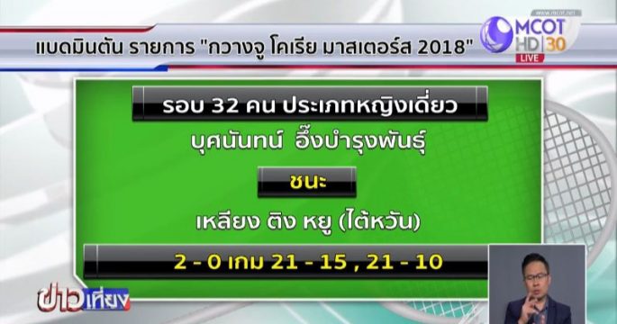 บุศนันทน์ อึ๊งบำรุงพันธุ์ พร้อม ทนงศักดิ์ แสนสมบูรณ์สุข 2 นักแบดมินตันทีมชาติไทย ผ่านเข้ารอบ 16 คนในศึกแบดมินตัน กวางจู โคเรีย มาสเตอร์ส ที่เกาหลีใต้