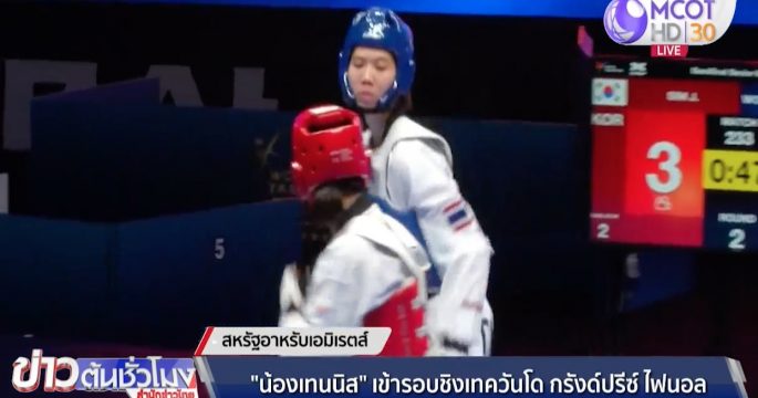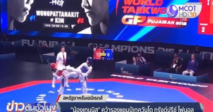“น้องเทนนิส” จอมเตะไทยเบอร์ 1 ของโลก ผ่านเข้าสู่รอบชิงชนะเลิศ ในรายการ “ฟูไจราห์ 2018 เวิลด์ เทควันโด กรังด์ปรีซ์ ไฟนอล”