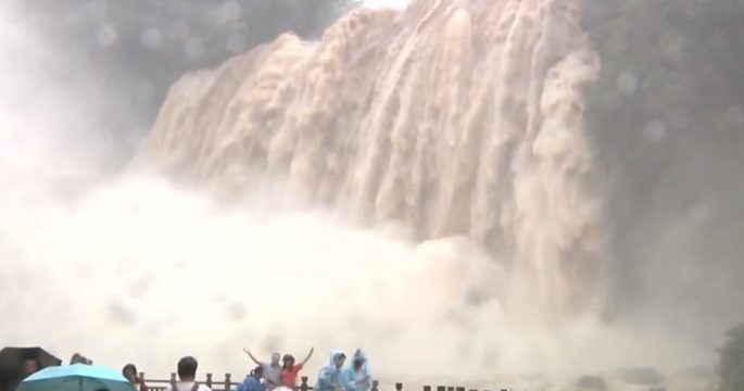 ฝนตกหนักทำน้ำทะลักท่วมน้ำตกใหญ่ที่สุดในจีน