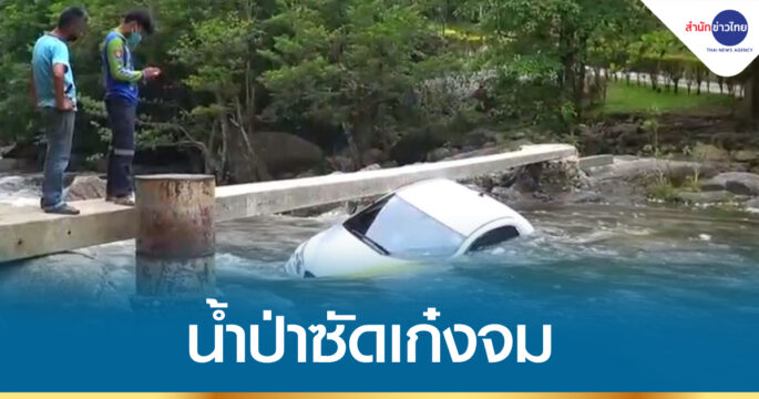 ที่ จ.พัทลุง หนุ่มขับรถเก๋งผ่านน้ำตก ในเขตรักษาพันธุ์สัตว์ป่าเขาบรรทัด เป็นจังหวะเดียวกับที่น้ำป่าหลากลงมาพอดี ซัดรถลอยไปติดกับสะพาน คนขับปลอดภัย แต่รถเก๋งเสียหาย