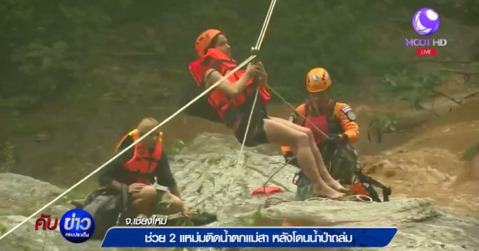 ช่วย 2 แหม่มติดน้ำตกแม่สา หลังโดนน้ำป่าถล่ม