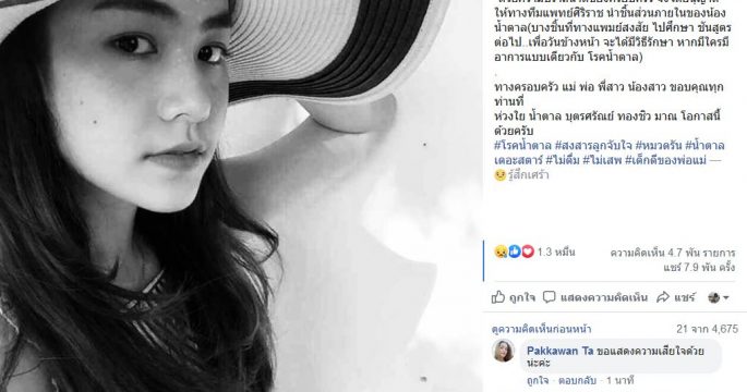 ครอบครัวน้ำตาล เดอะสตาร์มั่นใจได้รับการรักษาดีที่สุดเเล้ว หลังโคม่า หมอแถลงชัดพรุ่งนี้ น้ำตาล เดอะสตาร์5 หรือ น.ส. บุตรศรัณย์ ทองชิว นักแสดงและนักร้อง วัย 28 ปี เบื้องต้นมีอาการเลือดออกทางปาก–จมูก ต้องปั๊มหัวใจ และยังไม่รู้สึกตัว โดยถูกย้ายมารักษาตัวที่ รพ.ศิริราชเมื่อเช้าวันนี้ ครอบครัวแถลงอาการ “น้ำตาล เดอะสตาร์” ในวันนี้ (12มิ.ย.62) โดยมีแม่ พี่สาว และพี่เขย แม่เล่าว่าอาการลูกสาวบอกเลือดกำเดาจะไหล เหมือนลิ่มเลือด ตกใจตอนแรกนึกว่าเลือดกำเดาจนเยอะมาก จนพูดไม่รู้เรื่องแล้ว เลือดทะลักจนพูดไม่ได้ ยังไม่หมดสติ แม่ปั๊มจนรถมาแม่นั่งข้างหลัง ด้านพี่เขยเผยอาการน้ำตาลจะแย่ไปกว่านี้ไหม? ตอบไม่ได้ ชัดเจนต้องรอข้อมูลจากทางแพทย์ น่าจะพรุ่งนี้ (13 มิ.ย.) อาการตอนนี้ มั่นใจว่าเขาได้รับการรักษาดีที่สุด เท่าที่เราทำได้ ฝ่าย “น้ำผึ้ง” พี่สาว “น้ำตาล เดอะสตาร์ 5” เผยว่า “น้องยังไม่รู้สึกตัว ไม่สามารถหายใจเองได้ หัวใจเต้นไม่ปกติต้องใช้เครื่องช่วยหายใจ” ที่ทราบจากคุณหมอ ช่วงแรกได้มีการปฐมพยาบาลเบื้องต้นที่โรงพยาบาลสมุทรสาคร […]