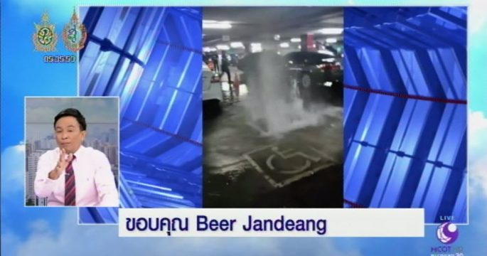 น้ำทะลักลานจอดรถศูนย์ราชการแจ้งวัฒนะ ดันฝาท่อซีเมนต์ลอยขึ้นมา