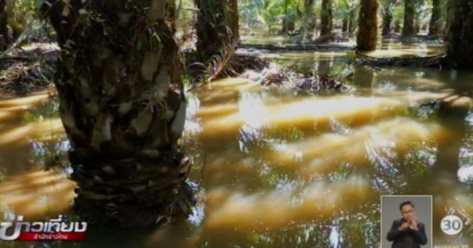 ที่ อ.หลังสวน จ.ชุมพร แม้สถานการณ์น้ำท่วมเริ่มคลี่คลายแล้ว แต่บางพื้นที่ยังมีน้ำท่วมขัง เสี่ยงน้ำเน่าเสีย สร้างความเสียหายให้พื้นที่การเกษตรนับพันไร่
