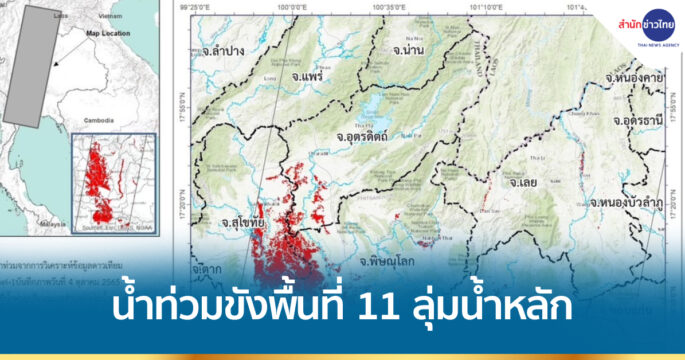 GISTDA ติดตามสถานการณ์น้ำท่วม โดยใช้ดาวเทียม Sentinel-1 ล่าสุดพบน้ำท่วมขังแล้วรวมทั้งสิ้น 3,289,514 ไร่ ในพื้นที่บางส่วนของ 11 ลุ่มน้ำสำคัญ