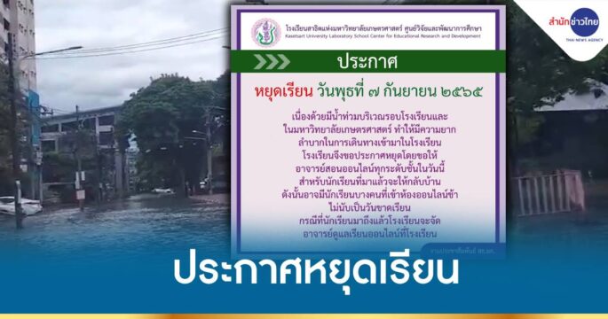 ฝนตกหนักในพื้นที่กรุงเทพฯ วานนี้ น้ำท่วมขังหลายพื้นที่ โรงเรียนหลายแห่งต้องประกาศหยุดเรียน เช่น โรงเรียนสาธิตแห่งมหาวิทยาลัยเกษตรศาสตร์ วิทยาลัยเทคโนโลยีรัตนโกสินทร์