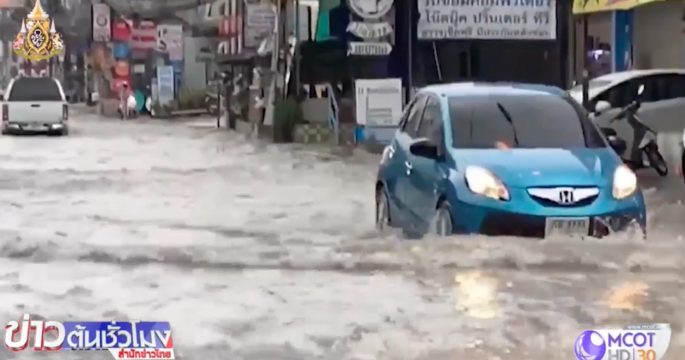 พัทยาน้ำท่วมอีกรอบ หลังเกิดฝนตกหนักต่อเนื่องเป็นเวลากว่า 2 ชั่วโมง ซอยสนามกอล์ฟสยามคันทรีคลับพัทยา ตำบลหนองปรือ มีน้ำท่วมสูงตั้งแต่ระดับ 30 เซนติเมตร ถึง 1 เมตร