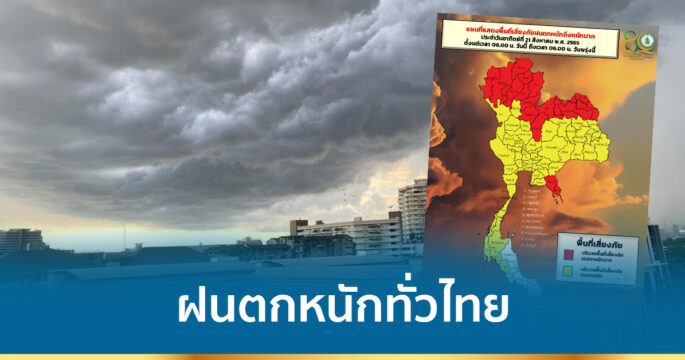 กรมอุตุฯ เตือนทั่วไทยรับมือฝนตกหนักถึงหนักมาก ระวังน้ำท่วมฉับพลัน-น้ำป่าไหลหลาก กทม. วันนี้ (21 ส.ค.) ฝนฟ้าคะนองร้อยละ 80