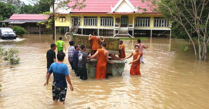 ชุมพรท่วมระลอก 2 ฝนตกหนักน้ำป่าทะลักกระทบ 15 หมู่บ้าน 2 อำเภอ วัดถ้ำรับร่อน้ำสูง ขอความช่วยเหลือขนย้ายสิ่งของและโลงศพ