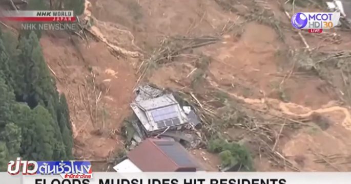 น้ำท่วมหลายพื้นที่ในจังหวัดคุมาโมโตะและคาโกชิมะ ทางภาคใต้ของญี่ปุ่น สูญหาย 13 คน บ้านถูกน้ำพัดจม 8 หลัง ทางการเตือนดินโคลนถล่ม คาดฝนจะตกถึงพรุ่งนี้ สั่งอพยพประชาชน 2 จังหวัด 75,000 คน