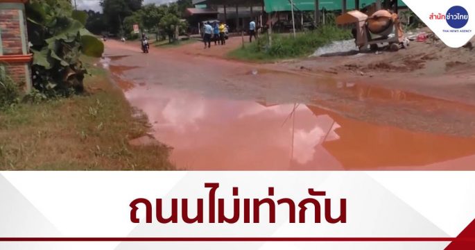 ชาวบ้านที่บึงกาฬ ร้องเรียนทำถนนไม่เท่ากัน ข้างหนึ่งสูง-ข้างหนึ่งต่ำ จนทำให้น้ำท่วมขังและเกิดอุบัติเหตุบ่อยครั้ง