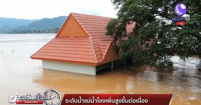 สถานการณ์น้ำโขงไหลผ่าน จ.เชียงราย สูงขึ้นต่อเนื่องกว่า 5 เมตร ทำให้เกิดน้ำหนุน เข้าท่วมพื้นที่การเกษตร และอาคารจำหน่ายสินค้าชุมชน