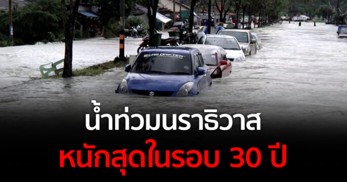 จ.นราธิวาส น้ำท่วมสูง 7 อำเภอ หลังฝนตกหนักต่อเนื่อง ประชาชนเดือดร้อน 15,069 คน ถนนเสียหาย 31 เส้นทาง
