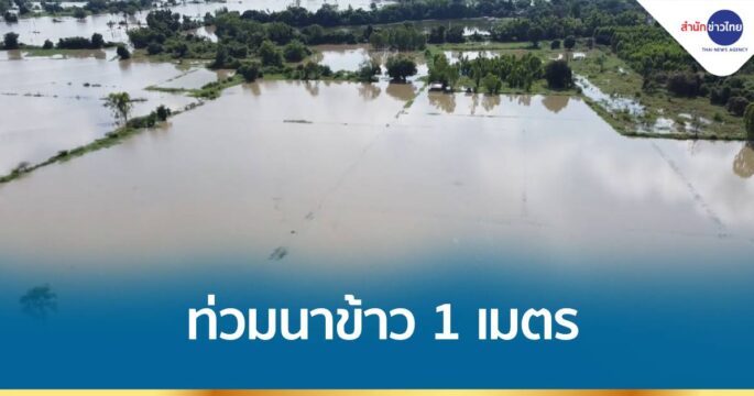 น้ำท่วมพื้นที่เกษตร ต.ตลาดไทร อ.ประทาย จ.นครราชสีมา เสียหายมากกว่า 500 ไร่ ทุ่งนาข้าวหอมมะลิที่กำลังออกรวง ถูกน้ำท่วมขังสูงกว่า 1 เมตร บางจุดสูง 2 เมตร