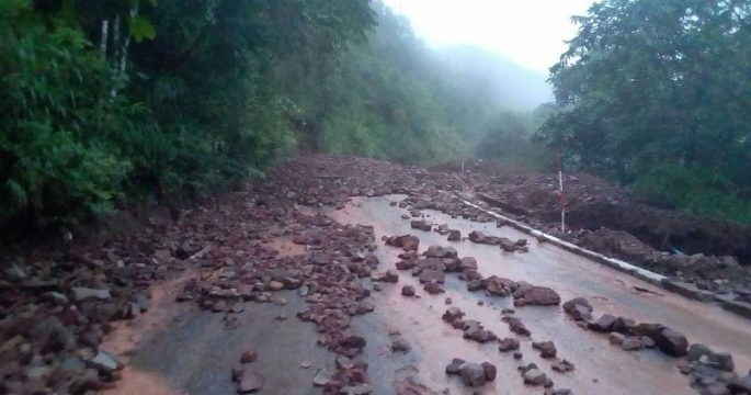 ดินเขาไหลทับเส้นทางบ่อเกลือ-เฉลิมพระเกียรติ ที่ กม.112 บ้านด่าน ต.ขุนน่าน อ.เฉลิมพระเกียรติ จ.น่าน รถไม่สามารถสัญจรได้