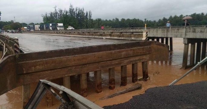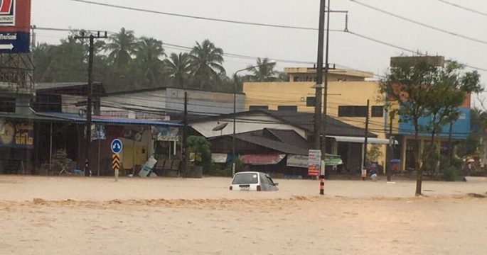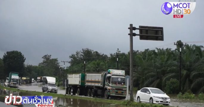 น้ำป่าไหลทะลักท่วมถนนสายเอเชีย 41 ในช่องทางขาล่องใต้ อ.สวี จ.ชุมพร ระดับน้ำสูง 30-40 ซม. ส่งผลให้รถติดยาวกว่า 3 กม.