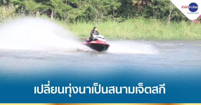 พลิกวิกฤติเป็นโอกาส เปลี่ยนนาข้าวที่ถูกน้ำท่วม เพาะปลูกไม่ได้ มาเป็นสนามซ้อมเจ็ตสกีแทน ให้ลูกหลานได้เล่นอย่างสนุกสนาน คลายเครียดจากสถานการณ์น้ำท่วม