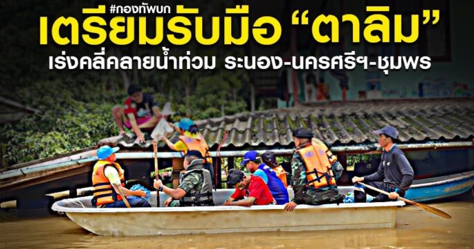 ทบ. ให้หน่วยทหารเตรียมรับมือ “โซนร้อนตาลิม” กำชับ ทัพภาค 4 เร่งคลี่คลายน้ำท่วมระนอง นครศรีธรรมราช และชุมพร