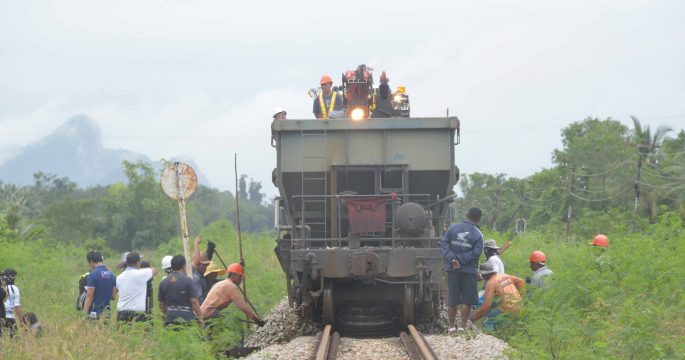 รฟท.นำเครื่องจักรกลหนักเร่งซ่อมทางรถไฟในพัทลุงถูกน้ำเซาะใต้รางเสียหาย 16 จุด คาดใช้เวลา 2 วัน เปิดใช้การได้