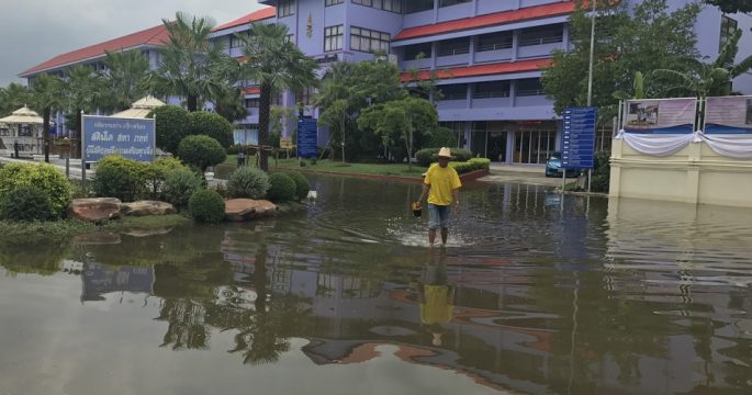 สมุทรปราการ 26 พ.ค.- ผู้ว่าฯ สมุทรปราการเกาะติดปัญหาน้ำท่วมขังโรงเรียนราชวินิตบางแก้วฯ และชุมชนในซอยมา 2 วัน พร้อมสั่งตั้งเครื่องสูบน้ำเร่งระบายลงคลอง หลังพบระดับน้ำลดลงเล็กน้อย หวั่นประชาชนเดือดร้อนนาน ทหารเตรียมรถรับ-ส่ง หากยังท่วมอยู่ บ่ายวันนี้ (26 พ.ค.) นายชาติชาย อุทัยพันธ์ ผู้ว่าราชการจังหวัดสมุทรปราการ ลงพื้นที่ติดตามสถานการณ์น้ำท่วมขังในซอยเมืองแก้ว หรือซอยโรงเรียนราชวินิตบางแก้ว ในพระบรมราชูปถัมภ์ หมู่ 13 ต.บางแก้ว อ.บางพลี จากฝนตกหนักเมื่อวานนี้ เพื่อหาทางแก้ปัญหาความเดือดร้อนของผู้อยู่อาศัยในบริเวณดังกล่าว และสถานศึกษา ซึ่งขณะนี้ระดับน้ำยังท่วมอยู่ประมาณ 30 เซนติเมตร เบื้องต้นผู้ว่าฯ สมุทรปราการได้ให้องค์การบริหารส่วนตำบล (อบต.) บางแก้ว ประสานไปยัง อบจ.สมุทรปราการและท้องถิ่นใกล้เคียง เพื่อขอเครื่องสูบน้ำมาติดตั้งตามจุดในซอย เพื่อเร่งสูบน้ำลงคลองบางนาและคลองบางวัว นายชาติชาย กล่าวว่า หากฝนไม่ตกมาอีกในช่วง 1-2 วันนี้ คาดว่าจะสามารถระบายน้ำได้หมด ทั้งนี้ ทางหน่วยทหารรักษาความสงบเรียบร้อย สังกัดกองพันทหารราบที่ 2 กรมทหารราบที่ 21 รักษาพระองค์ฯ (ร้อยรส.ร.21 […]