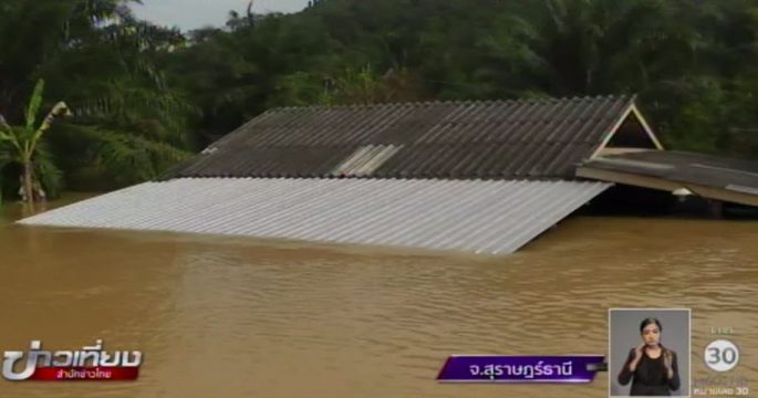 สุราษฎร์ธานี ฝนยังตกหนักหลายพื้นที่ ทะลักท่วมสถานที่ราชการหลายแห่ง อ.ท่าชนะ ระดับน้ำท่วมสูงหลายจุด โดยเฉพาะในเขตเทศบาลและที่ลุ่มต่ำ บางจุดท่วมสูง 1 เมตร
