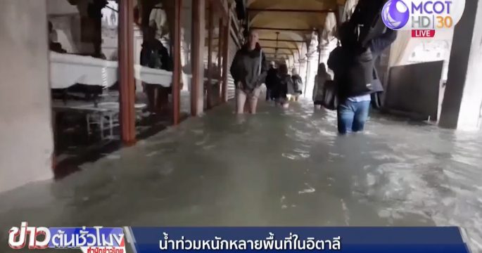 อิตาลีฝนตกหนัก เมืองเวนิส น้ำล้นตลิ่งสูงที่สุดในรอบกว่า 50 ปี ทะลักท่วมโบสถ์อายุนับพันปี จัตุรัสเซนต์มาร์กจมอยู่ใต้น้ำ