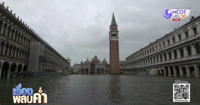 เมืองเวนิส ของอิตาลี มีน้ำท่วมขังทั่วทั้งเมือง รวมถึงจัตุรัสเซนต์มาร์ก สถานที่ท่องเที่ยวชื่อดัง เนื่องจากในช่วงเวลานี้เป็นช่วงฤดูน้ำขึ้นสูง