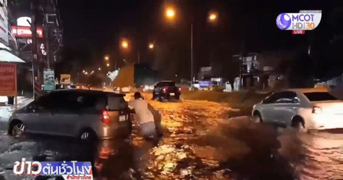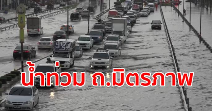 น้ำหลากท่วม ถ.มิตรภาพ ทั้งขาเข้า-ขาออก 8 ช่องทาง หน้าตลาดเซฟวัน อ.เมืองนครราชสีมา หลังฝนกระหน่ำนานเกือบชั่วโมง