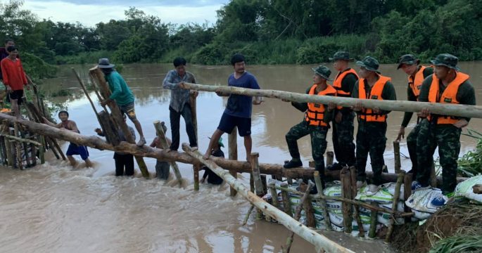 มณฑลทหารบกที่ 39 ส่งชุดบรรเทาสาธารณภัย ทำพนังกั้นน้ำ กรอกกระสอบทรายแจกชาวบ้าน หวั่นน้ำทะลักท่วมพื้นที่ อ.บางกระทุ่ม จ.พิษณุโลก
