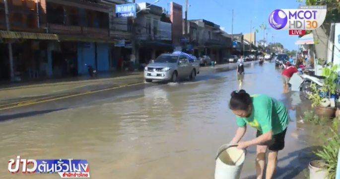 สถานการณ์น้ำท่วมในพื้นที่จังหวัดตรัง โดยน้ำในอำเภอนาโยงได้ไหลเข้าท่วมในเขตเทศบาลนครตรังแล้ว