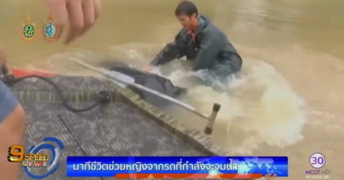 สถานีโทรทัศน์ WAFB สหรัฐ แพร่ภาพนาทีชีวิต เมื่อนายเดวิด ฟุง หน่วยกู้ภัย ได้กระโดดลงน้ำไปช่วยหญิงที่ อยู่ในรถเปิดประทุน ที่กำลังจะจมน้ำ