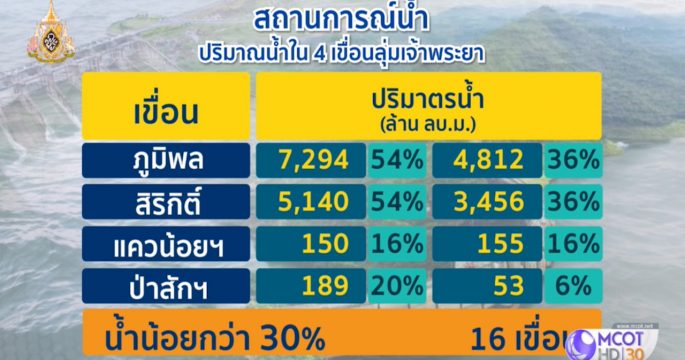 ตรวจสอบสถานการณ์น้ำในเขื่อนใหญ่ลุ่มเจ้าพระยาเปรียบเทียบตัวเลขปีนี้กับปีที่แล้ว พบว่าโดยรวมปีนี้น้ำน้อยกว่าปีที่แล้วเกือบทุกเขื่อน